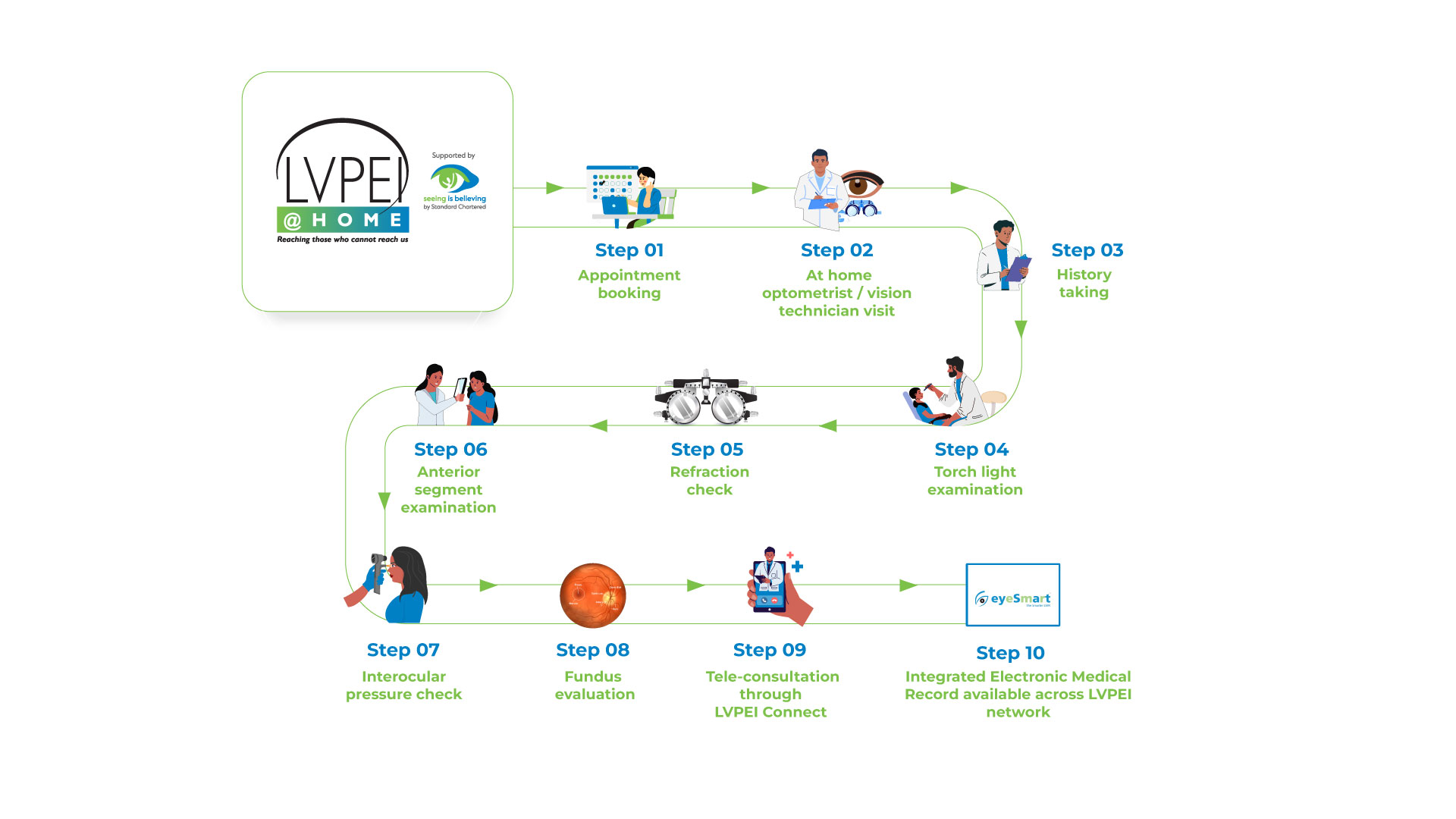 The aim of LVPEI@Home is to take eye care closer to the doorstep of people. It makes expert ophthalmic eye care available right at the patient’s doorstep.