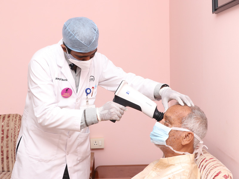 LVPEI@Home is a step further to ConnectCare (teleconsultation). Under LVPEI@Home, a trained optometrist physically visits the patient at their home and conducts a comprehensive eye examination, followed by a teleconsultation with an ophthalmologist on video-call. It is suited for both new and existing (follow-up) patients. Further, when the ophthalmologist feels there is a need for investigations after the first home visit, more advanced tests can be done at home at scheduled second visit including ultrasound, optical coherence tomography and visual field examination.