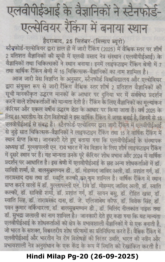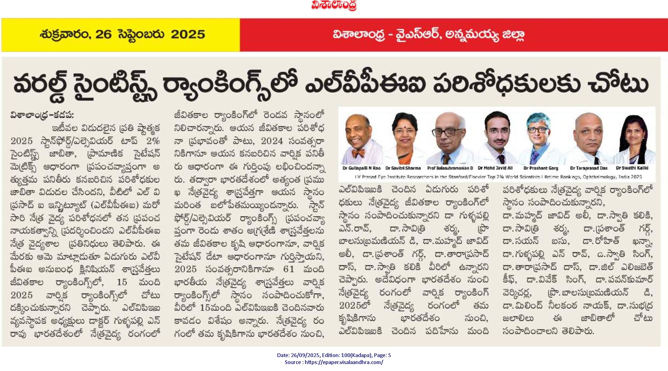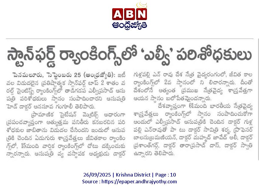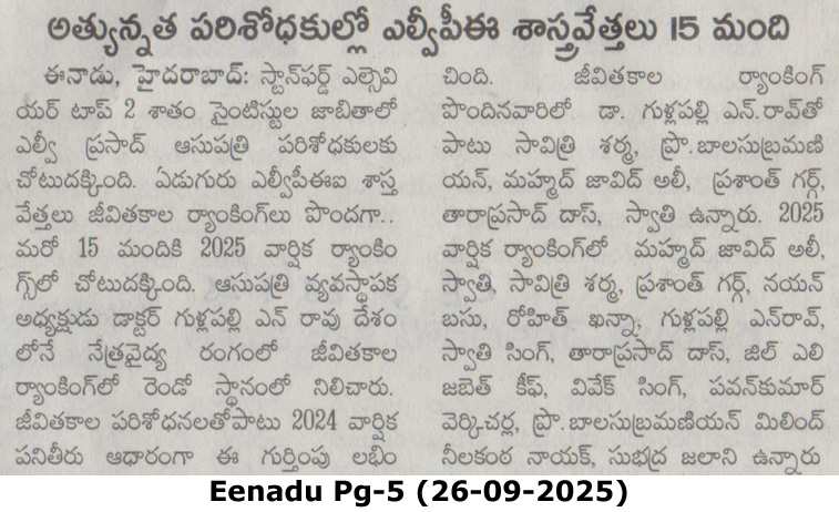- - https://matribhumisamachar.com/en/2025/09/25/lvpei-researchers-shine-in-stanford-elsevier-top-2-world-scientists-rankings-2025/ - Matribhumi Samachar