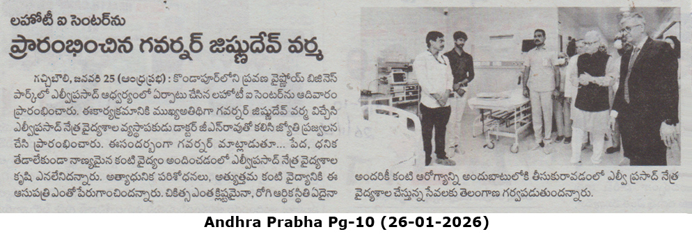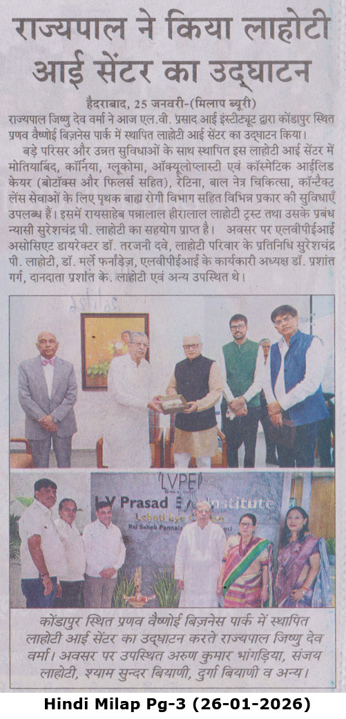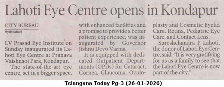 - - https://safirnews.in/2026/01/25/lvpei-inaugurates-new-lahoti-eye-centre-in-kondapur/ - Safir News