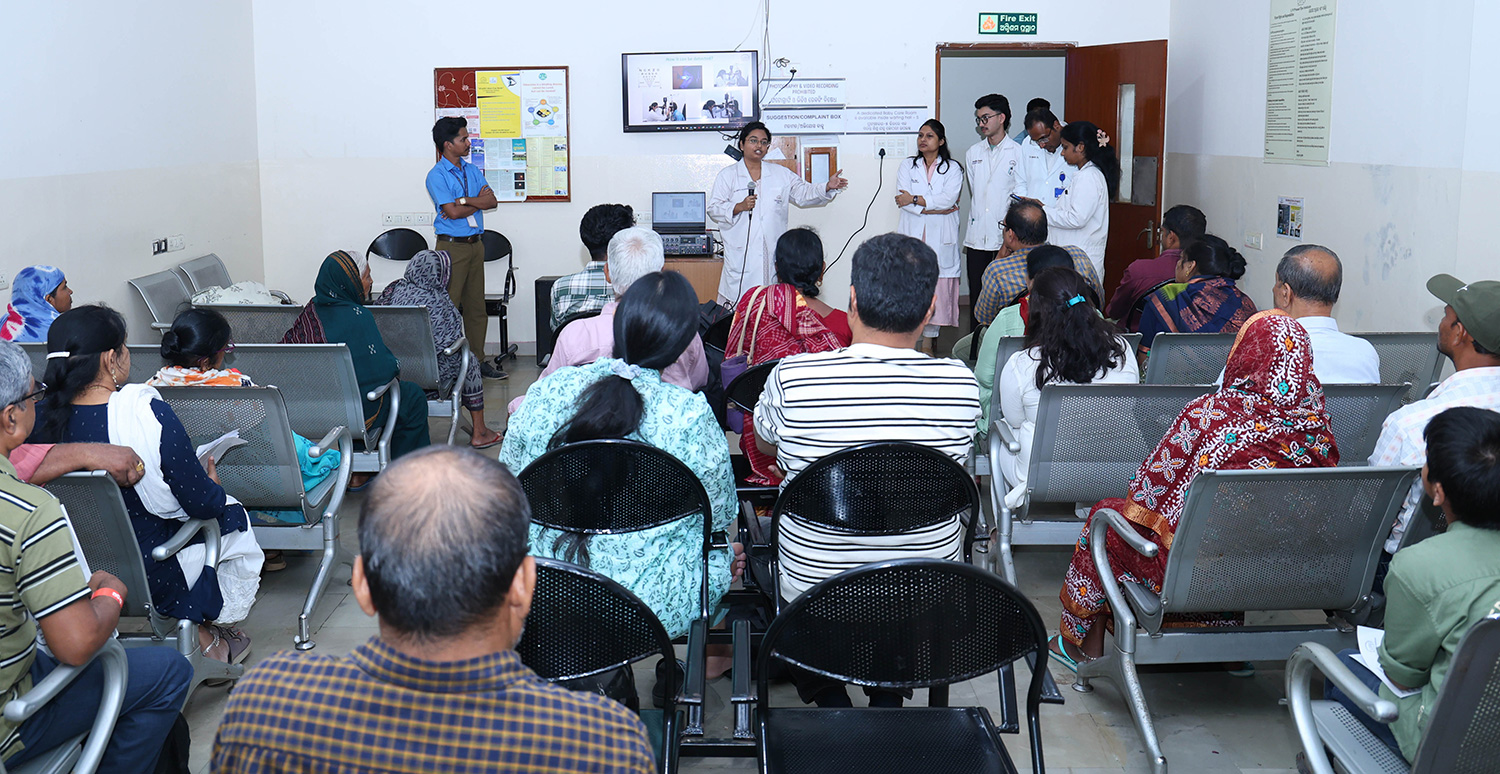 To extend outreach, a glaucoma awareness radio jingle was broadcast in Odia and Hindi, covering an approximately 80 km radius and reaching over 1.3 million people in and around Bhubaneswar. Educational leaflets were also distributed across the campus to reinforce key messages.