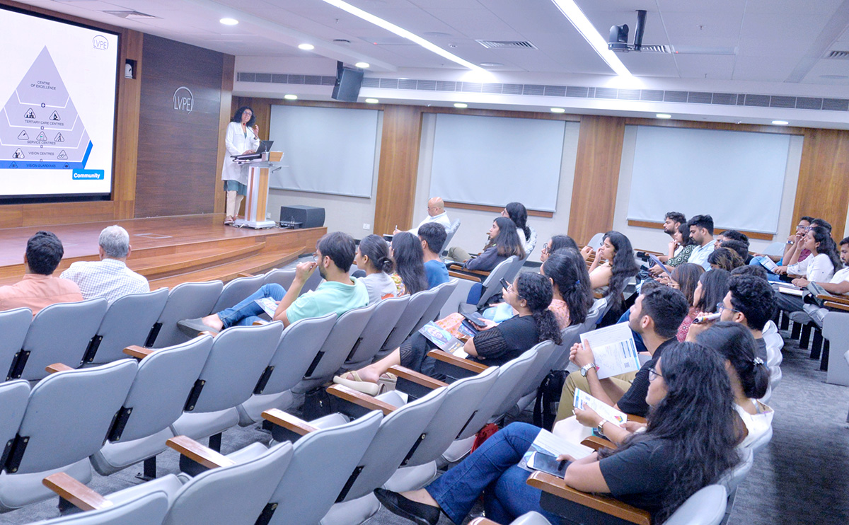 The visit included a presentation on LVPEI’s innovative models in eye care delivery, a guided tour of the Institute’s advanced facilities, and an interactive session with Dr Merle Fernandes, Campus Director. ISB students discovered how a donor-backed, cross-subsidy model enables world-class eye care for everyone, regardless of their ability to pay.